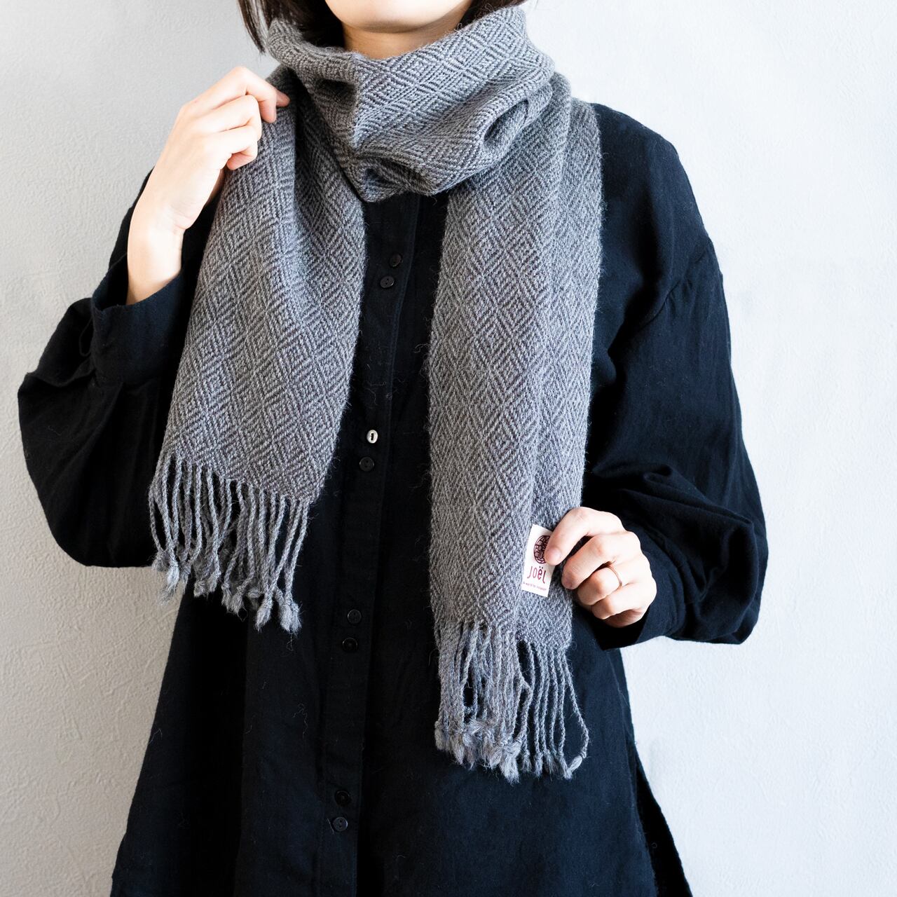 アルパカ100% マフラー(グレー×ダイヤモンド織りデザイン)